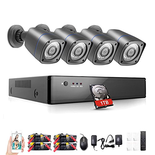 Rraycom 8CH 1080H 2.0MP Video Security Camera System DVR 1TB Hard Drive 4 2000TVL Weatherproof Cameras SMD LED Night Vision Distance 36M