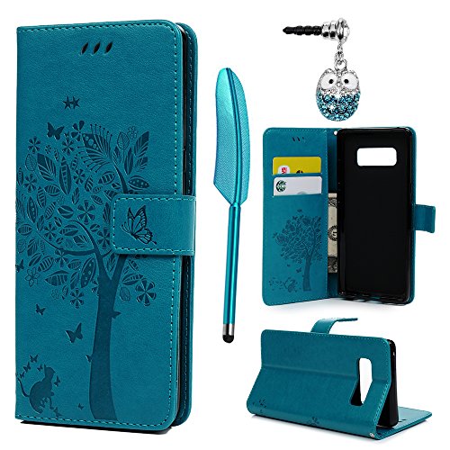 -. Binding : Wireless Phone Accessory -. Brand : MOLLYCOOCLE -. Color : Blue -. Feature : Specially designed for Samsung Galaxy Note 8. / Beautiful Elegant embossed pattern and Premium PU cover makes your phone more classic and more attractive. / Built-in card slots, cash pocket allows for convenience and quick, easy access when you are busy. / It is easy to install and remove, without damaging or scratching the phone body. / Perfectly fits for Samsung Galaxy Note 8. And it will not fit for any other devices. Available in a range of fashionable colors to suit your style.You deserve it! -. Label : MOLLYCOOCLE -. Manufacturer : MOLLYCOOCLE -. MPN : XYEZST-ZH20730FAE9-F -. PackageQuantity : 1 -. PartNumber : XYEZST-ZH20730FAE9-F -. ProductGroup : Wireless -. ProductTypeName : WIRELESS_ACCESSORY -. Publisher : MOLLYCOOCLE -. Studio : MOLLYCOOCLE -. Title : MOLLYCOOCLE Galaxy Note 8 Case,Embossed Wallet Case PU Leather Tree Cat Butterfly Pattern Soft Black TPU Inner Bumper Card Slots Protective Cover for Samsung Galaxy Note 8 - Blue