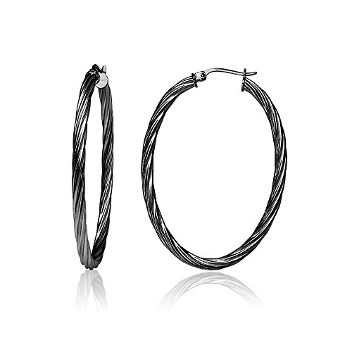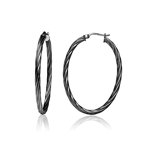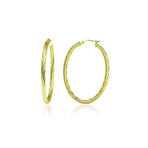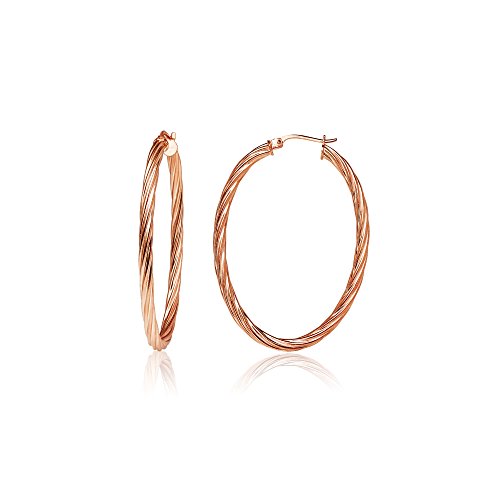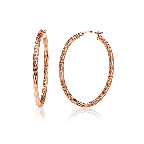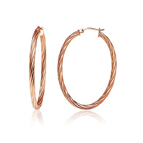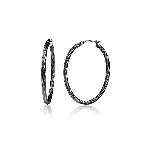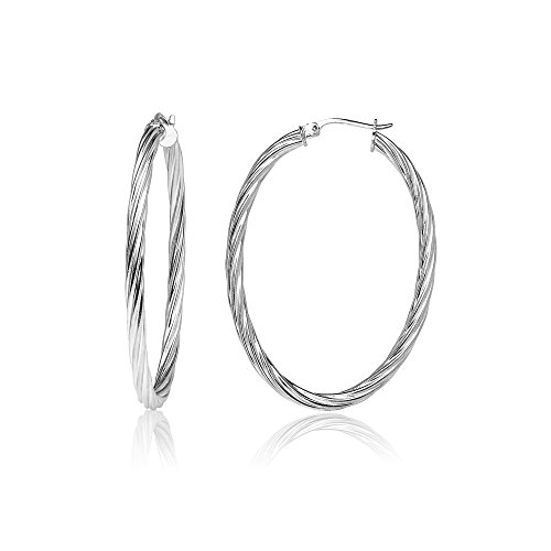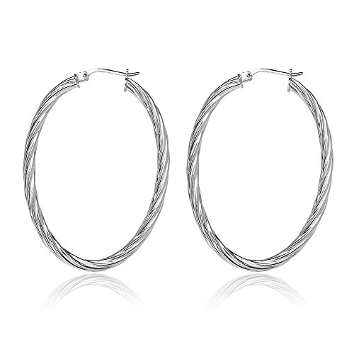 Sterling Silver 3mm Oval Twist Hoop Earrings, 20mm, 25mm, 30mm