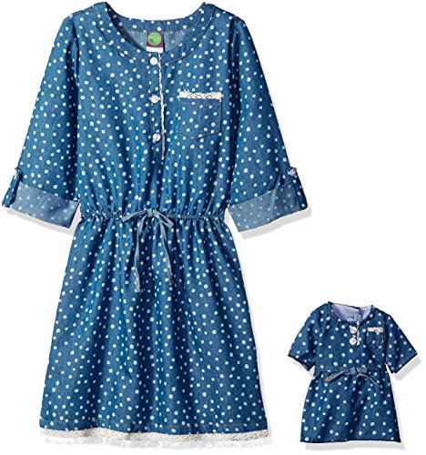 Dollie & Me Big Girls' Chambray Polka Dot Printed Shirt Dress, Denim, 8