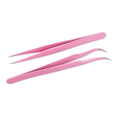 -. Title : SALOCY Stainless Steel Tweezers for Eyelash Extension,False Lash Application Tools,Straight and Curved Tip Tweezers Nippers,2 Pcs,Pink