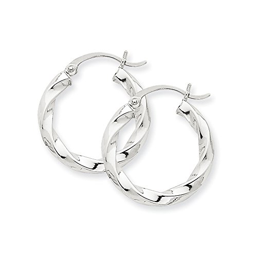 Grace and style, a combination that offers timeless beauty fashioned from polished 14k white gold. They feature a traditional twisted hollow design with a snap-tight hinged post and measures approximately 3mm (1/8 inch) in width by 22mm (7/8 inch) in diameter.Feature