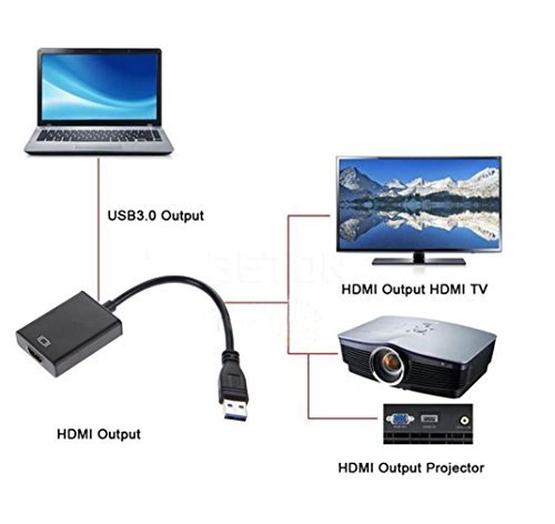RayCue USB 3.0 To HDMI HD 1080P Video Cable Adapter Converter For Laptop HDTV TV Multi Display Graphic Audio Video Adapter Black