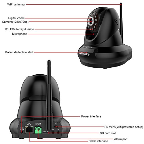 Amgaze HD Pan Tilt IP Wireless Security Camera (Day/Night Vision,720P, WiFi,2 Way Audio, SD Card Slot, Alarm, Mobile Android/iOS/iPhone/iPad/Tablet) For Pet Monitor, Puppy Cam, Baby Monitor