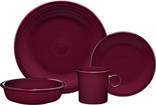 Studio : Fiesta Publisher : Fiesta Binding : Kitchen Product Description Fiesta 4-Piece Place Setting manufactured by The Homer Laughlin China Company. America's largest domestic producer of dinnerware, and the sole manufacturer of all Fiesta dinnerware. All Fiesta pieces are Microwave safe, Oven-proof, Dishwasher safe, Freezer proof, Lead-Free, and Made in America with the implementation of many green practices. The very durable glaze is great for everyday use. Fiesta as a pattern has stood the test of time, and is typically passed down from one generation to the next. We have kept the pattern constant through the years so that you can count on us to be here when you decide to expand or change your collection. New pieces and colors are added every so often to keep things interesting. Currently, Fiesta is the most collected dinnerware in America. 0