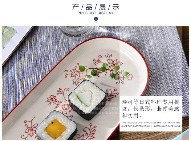 日式陶瓷长盘 寿司盘鱼盘冷菜盘 西餐盘蛋糕盘点心盘