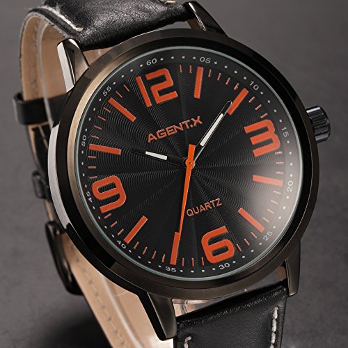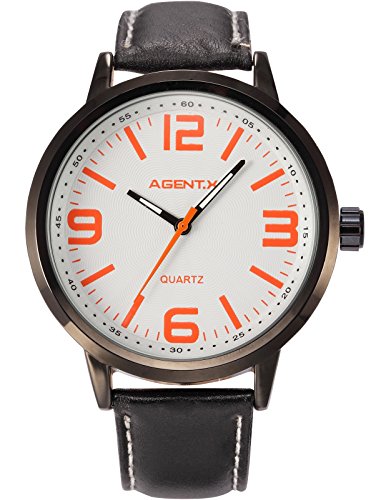 -. Title : [エージェント エックス]Agent X 腕時計 オーバーサイズ ダイヤル ブラック レザーバンド メンズ