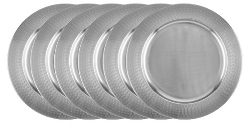 Old Dutch 13" Brushed Nickel Charger Plates - Hammered Rim, Set of 6