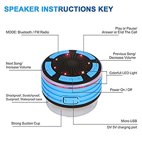 Waterproof Bluetooth Shower Speaker, Wireless Shower Speaker and FM Radio LED Lighting Loudspeaker