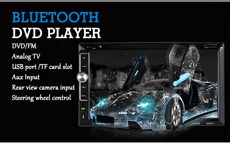 Main function:DVD / MP4, USB / TF, FM, Bluetooth, steering wheel control, rear camera input, Aux In, Analog TV