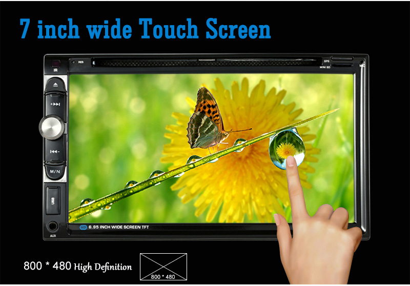 1. 7 inch 2 din HD car radio player with digital touch screen.