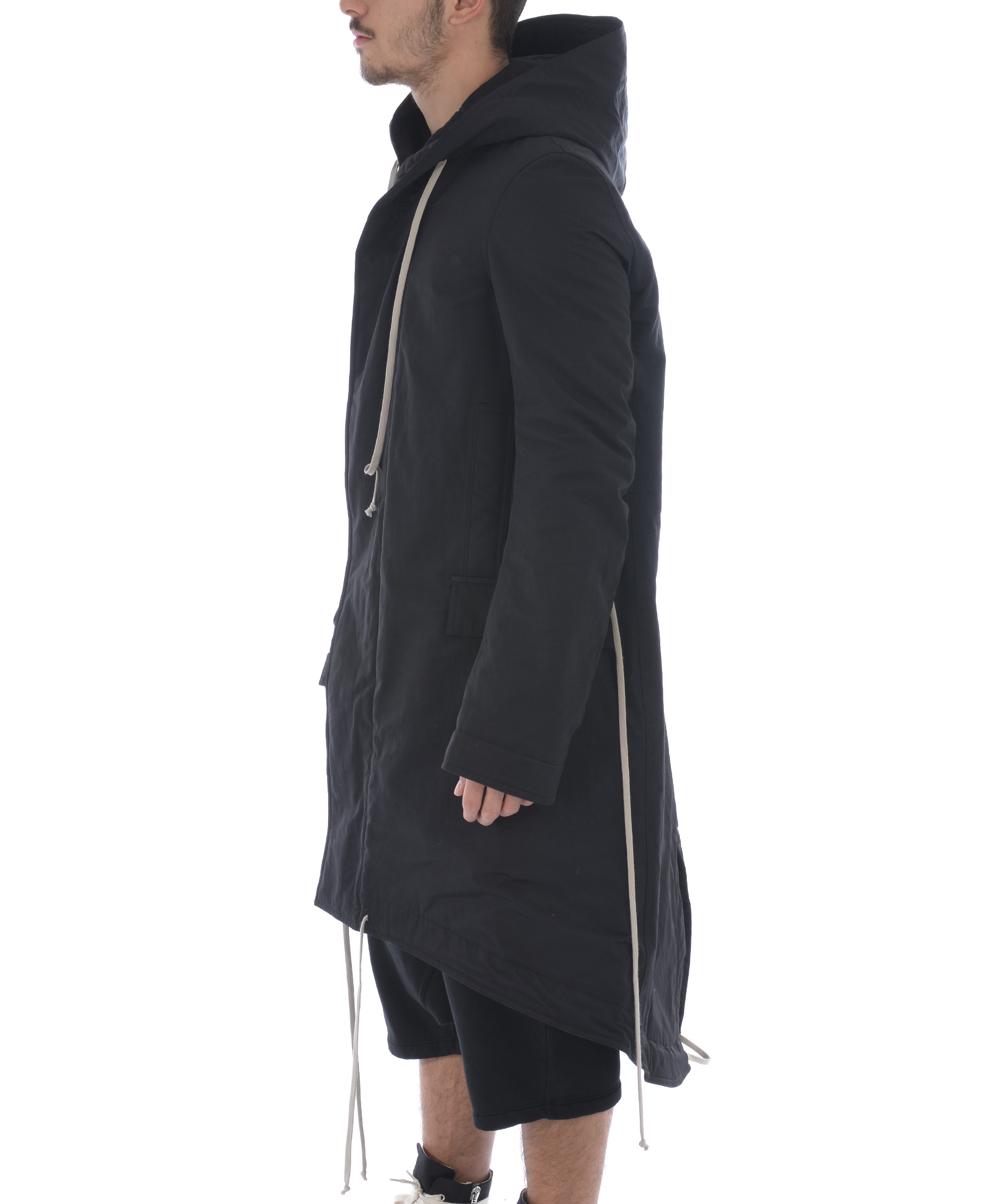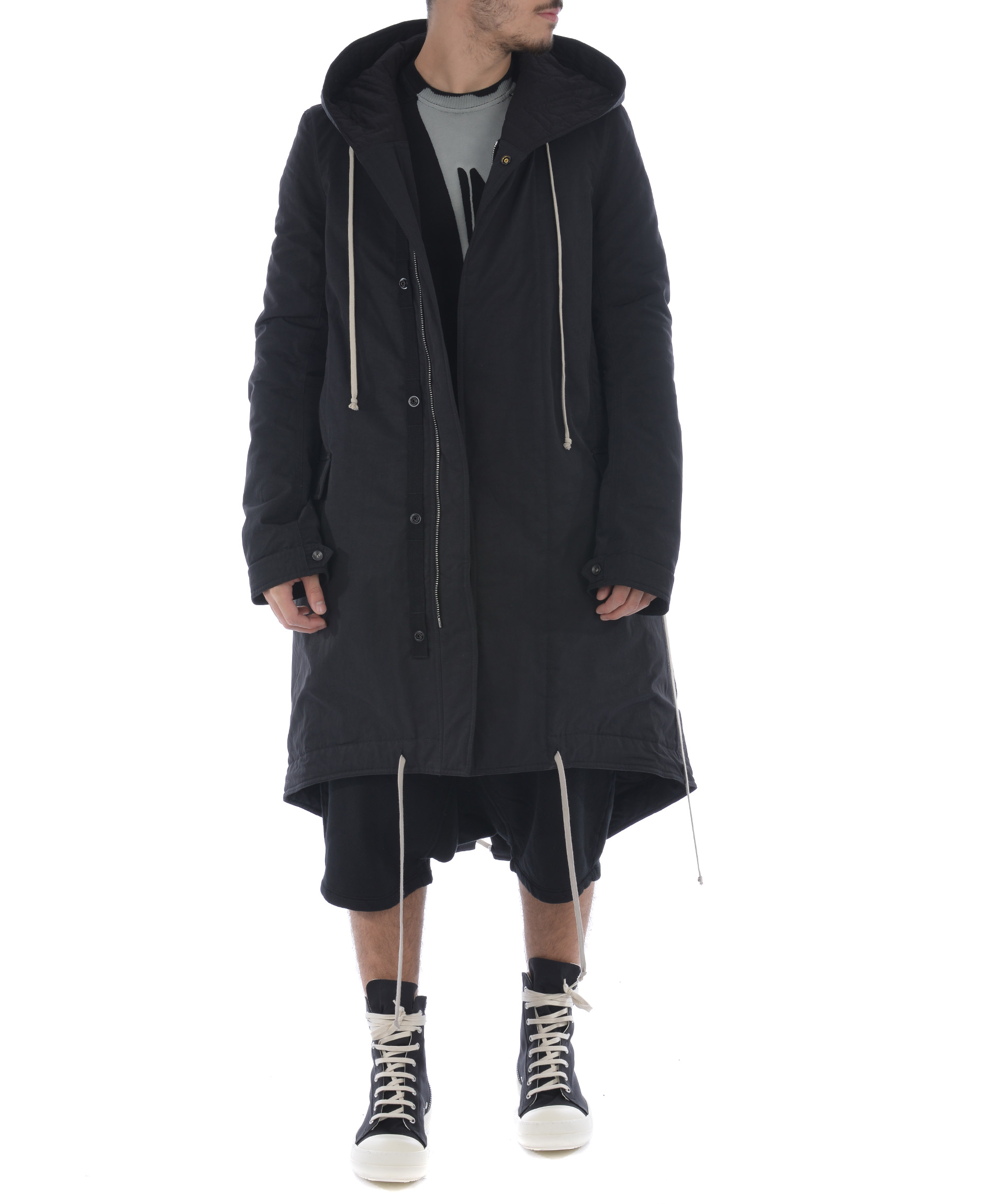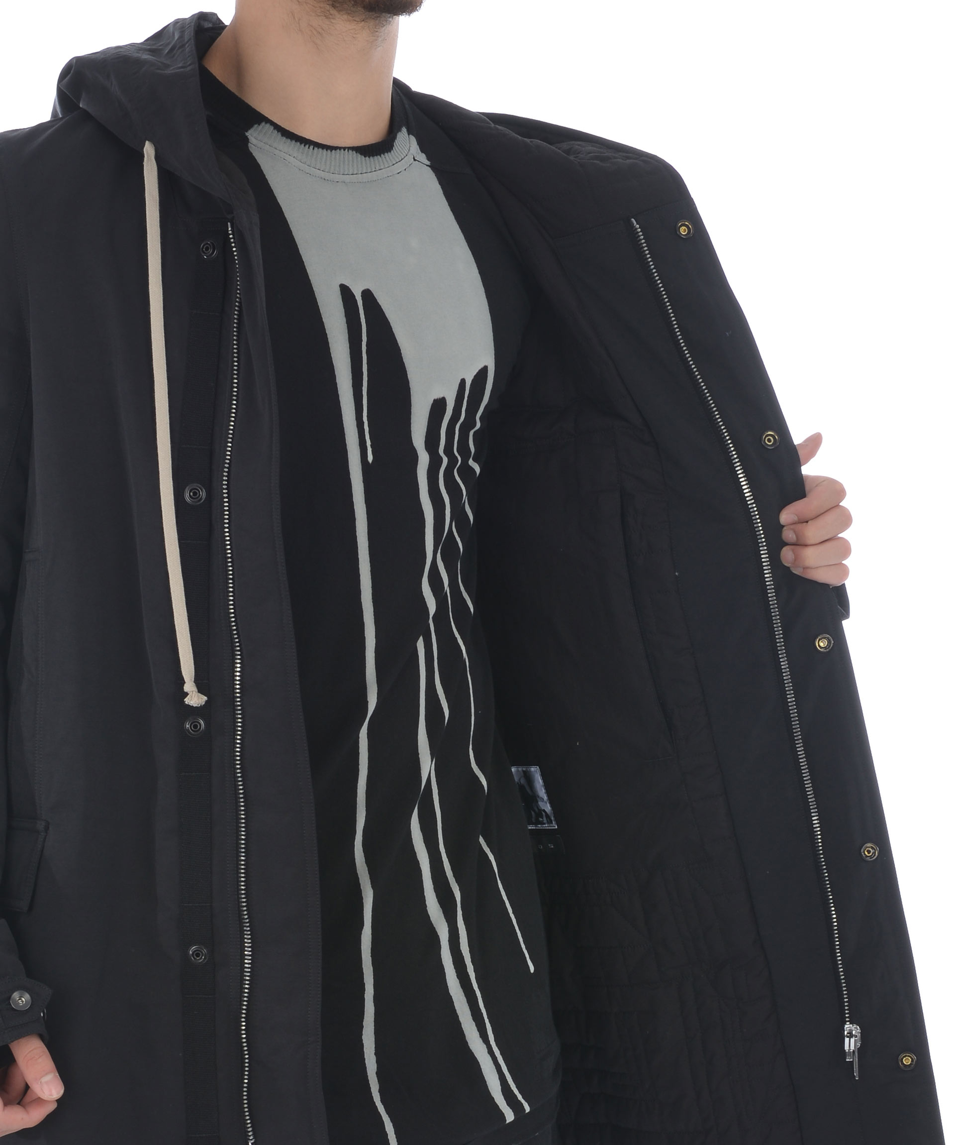 Parka Rick Owens DRKSHDW in tela di cotone Nero. Imbottitura sintetica. Cappuccio fisso con coulisse. Chiusura con zip e bottoni a pressione. 2 tasche frontali inserite e 2 tasche con pattina. Tasche interne con zip. Coulisse in vita e al fondo. Polsi regolabili.