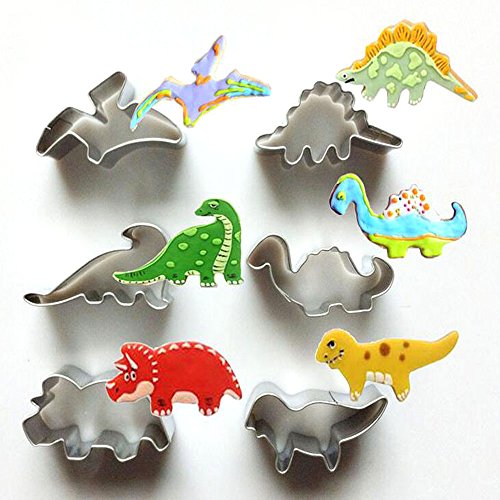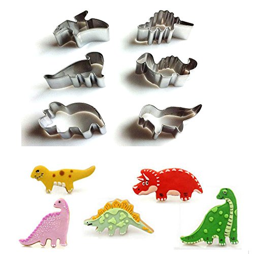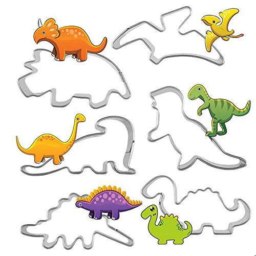 (Set of 6)The Easiest Fantasy Dinosaur Sugarcraft Cookie Cutter Set,Triceratops, Stegosaurus, T-Rex, Brontosaurus and Pterodactyl
