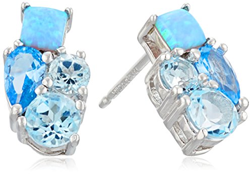 Sterling Silver Lab-Created Aquamarine, Sky Blue Topaz and Created Light Blue Opal Dainty Gemstone Stud Earrings, .25" W x .5" H