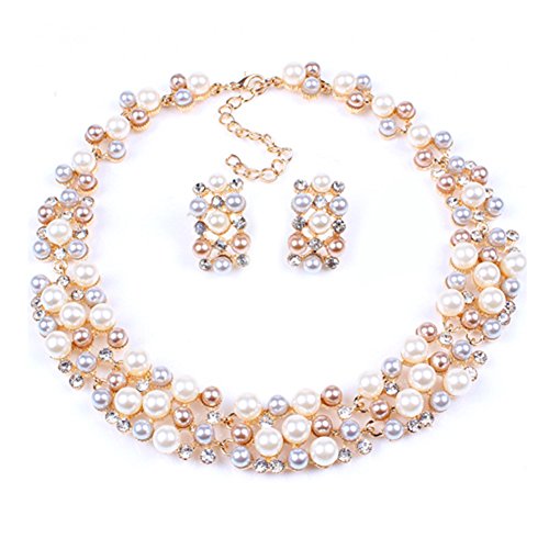 - Feature : Material: Alloy, Faux Pearl, Crystal / Necklace Length: 42 + 7cm /16.54'' + 2.76'' (Approx.) / Earrings Size: 1.5cm x 2.5cm/0.59'' x 0.98'' (Approx.) / Perfect for wedding, party wearring / Package includes: 1 x necklace, 2 x earrings
