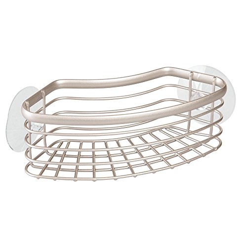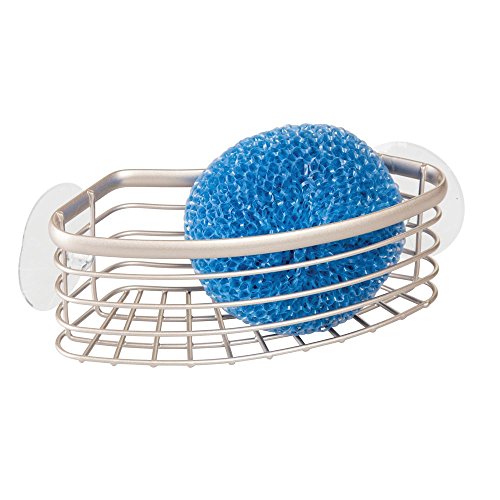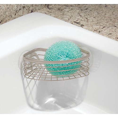 mDesign Suction Corner Sink Center Holder for Kitchen Sponges, Scrubbers, Sink Stoppers – Satin