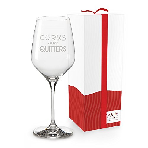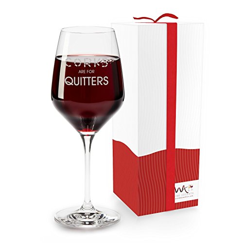 HIGH QUALITY WINE GLASS Most novelty glass sellers use cheap glasses you would find at a diner - no fun for drinking a nice glass of wine. We want your gift receiver to have a great experience with each sip of wine throughout their lifetime. Our fine crystal glass is large-sized with a long stem and thin cut rim that makes drinking a pleasure, whether it's an Opus One or a Two Buck Chuck.
