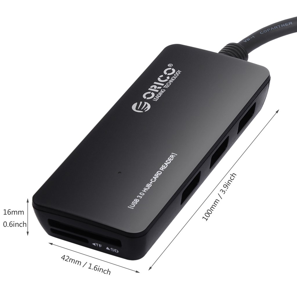 ORICO H3TS-U3-BK is an innovation with VL812 and GL3233 chipest to achieve perfect match in HUB and SD Card. Adopting the latest USB 3.0 technology, this product gives you direct access to Super Speed data transfer rates of up to 5Gbps. Transfer videos, music, photos, and data files between USB devices and your computer at blazing fast speeds. Also, it designs for an extra SD and TF Card to meet other demands.