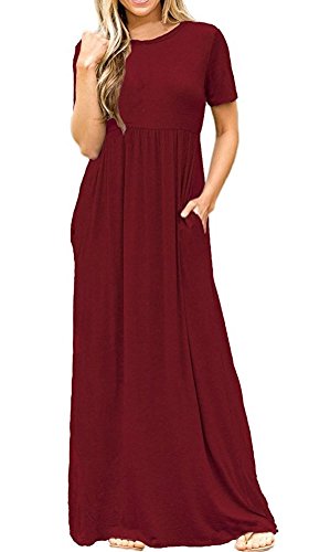-. Title : roswear Women's Summer Casual Round Neck Ruched Short Sleeve Floral Maxi Dress With Pockets