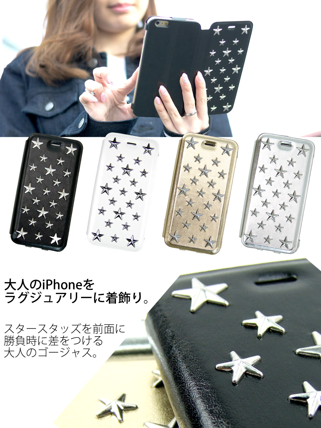 ◆星 スタッズ★手帳型ケース◆星型スタッズと、上質な合皮の組み合わせが、大人気のケース♪ケースの装着は、上からスライドインさせて挿し込むスリットインタイプで、ピッタリとフィットし、スリムで、かさばりません。また、マグネット内蔵により、パタリと閉じます。光り過ぎないスタッズで、高級感があり、大人らしさアップ♪大人なモノトーンカラーをラインナップで、使いやすさと質感にこだわったオススメ商品です★※ご利用のモニター、ディスプレイにより若干色味に差がある場合がございます。ご了承ください。※商品の生産時における装飾等は海外にて手作業で行っており、多少の差異がある場合がございます。ご了承ください。