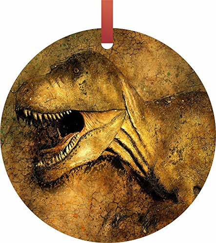 Jacks Outlet Dinosaur Flat Aluminum Semi - Gloss Hanging Holiday Tree Ornament, Round