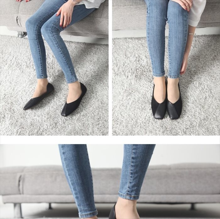 商品名:フラットパンプス レディース ペタンコ スクエアトゥ 切り替え 2017 秋冬 ファッション 靴 婦人靴