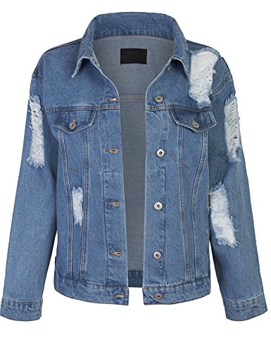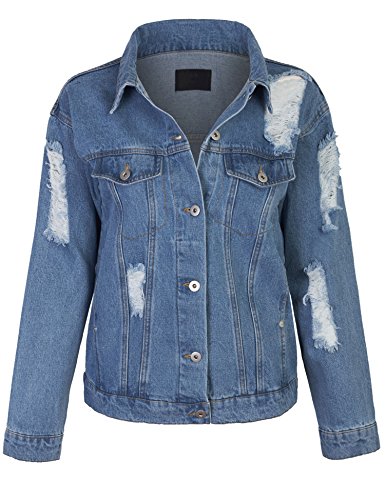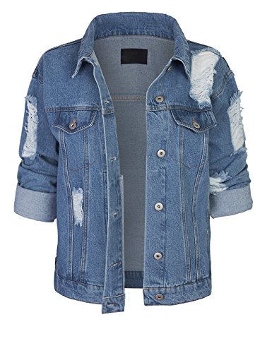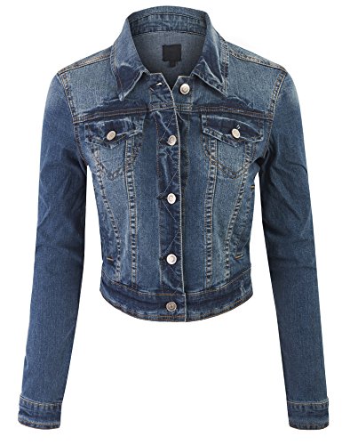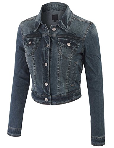 Kogmo Womens Classic Vintage Cropped Denim Jacket With Pockets