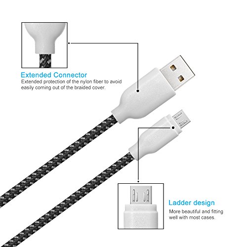 USB Cable, iOrange-E 3 Pack Reversible Cable Braided Micro USB Charger, Quick Charge and Data Sync for Android, Samsung S6, Galaxy Note Edge, HTC One M8, M9 and More (Black, Blue, Green)