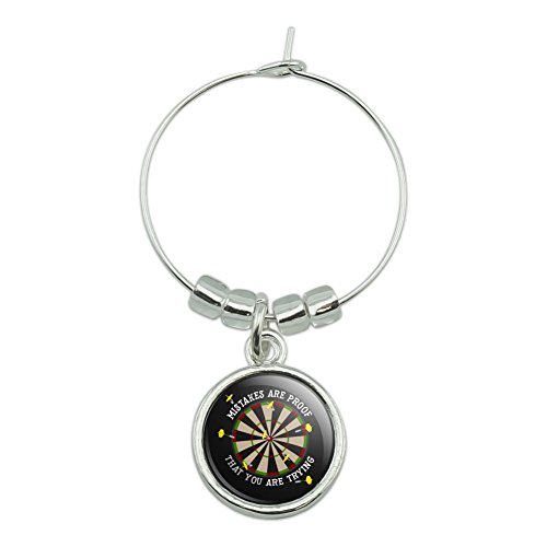 -. Brand : Graphics and More -. Feature : As unique as it is functional, this super awesome wine/drink charm will add pizzazz to any get-together. Choose from the hundreds and hundreds of designs and themes in our other product listings to add to your collection or to suit any party theme or all of your guests' interests. / The charm dangles on the metal attachment and attaches easily to any stemmed glass. Comes with the resin-topped design on both sides of the charm. Sorry, wine is not included. / Made of metal. Approximate size of charm is 0.6" (15mm) in diameter. / An inspirational message for the doers in your life...no matter how perfect they are. / A Graphics and More product. -. Label : Graphics and More -. Manufacturer : Graphics and More -. MPN : CHARM_WINE.Z000684 -. NumberOfItems : 1 -. PartNumber : CHARM_WINE.Z000684 -. ProductGroup : Kitchen -. ProductTypeName : KITCHEN -. Publisher : Graphics and More -. Studio : Graphics and More -. Title : Mistakes Are Proof That You Are Trying Darts Funny Wine Glass Charm Drink Marker