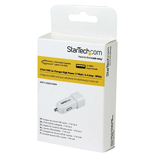 Charge your tablet and your cell phone simultaneously, in your car - Charge your phone and your tablet simultaneously, while you're in your car driving. This dual-port car charger features two USB 2.0 ports - one 1A port for charging your smartphone or iPhone and one 2.4A port for charging your iPad or other tablet. Plus, when you're traveling with a passenger, having the second USB charge port available means that you can charge two phones simultaneously and ensure that both of your mobile devices are ready when you arrive. The durable USB2PCARWH white dual-port car charger is backed by StarTech.com's 2-year warranty to ensure dependable performance.