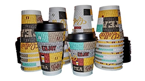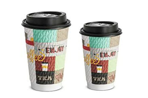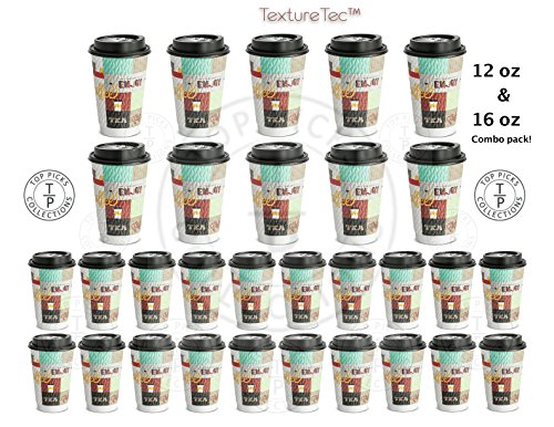 NEW! 12 Oz & 16 Ounce Combo Pack Ultra Premium Disposable Coffee Cups with No Leak Lids Beautiful Design Patented Double Wall Textured Insulated Hot Cups for Events Party Office Home - Made in USA