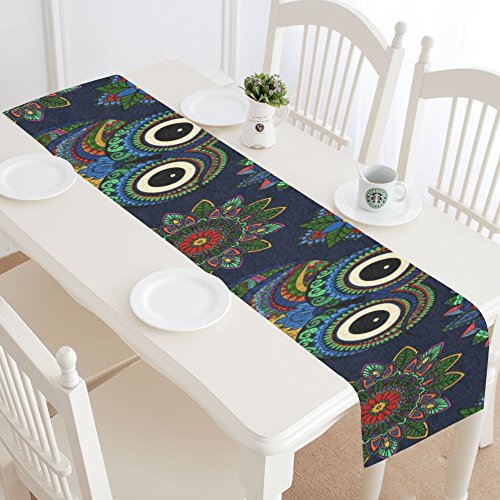 -. Title : InterestP.R.Int Boho Owl Cotton Table Runner Placemat 14 x 72 inch, Bohemian Flower Mandala Table Linen Cloth for Office Kitchen Dining Wedding Party Home Decor