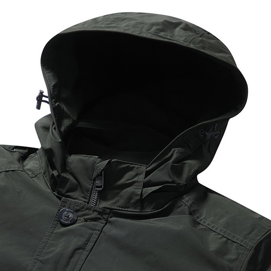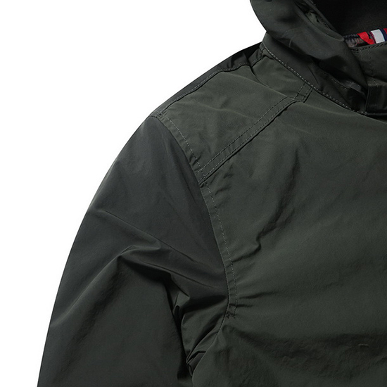 - 하이넥 디자인에 탈착형 후드 디테일로