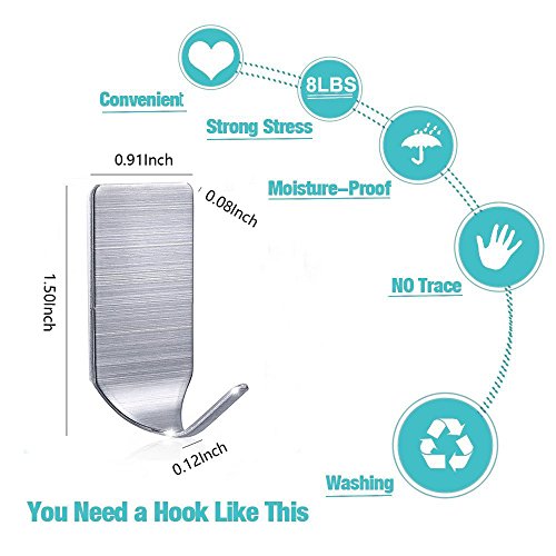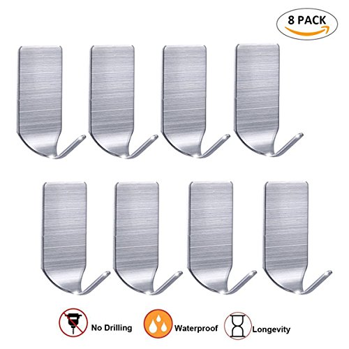 3M Self Adhesive Wall Hook,Stainless Steel Ultra Strong Waterproof Hanger for Robe, Coat, Towel, Keys, Bags In the Home, Kitchen, Bathroom (Narrow)
