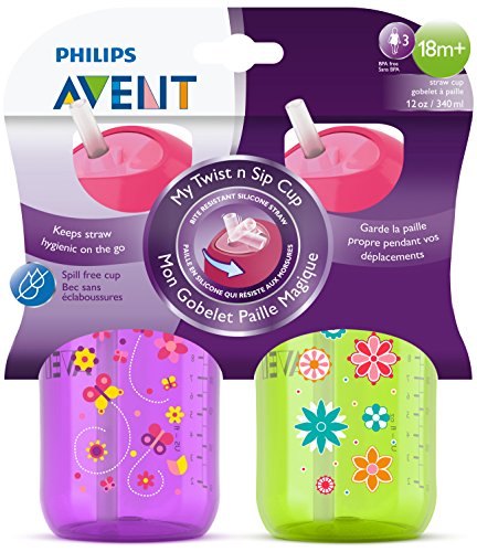 -. Title : Philips Avent My Twist N Sip Straw Cup, 12 Ounce, Pink/Purple/Green, Stage 3