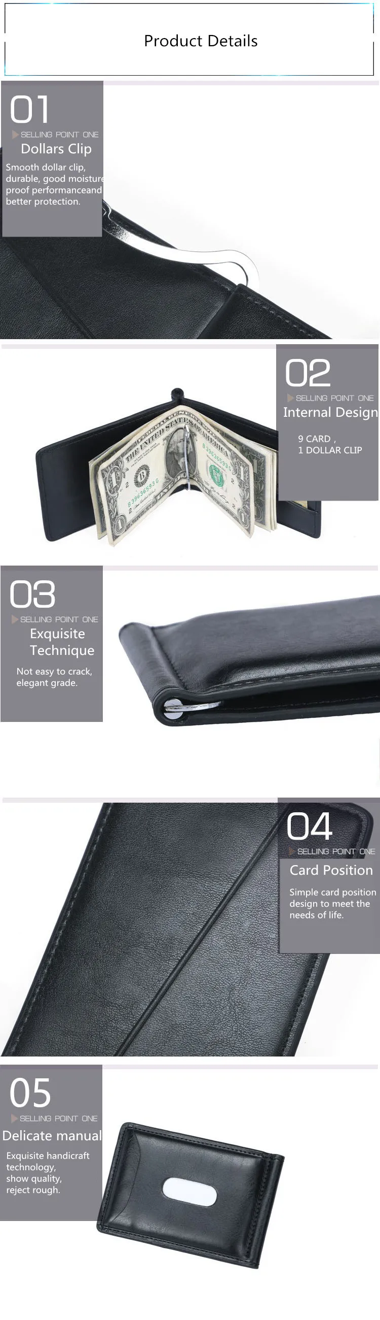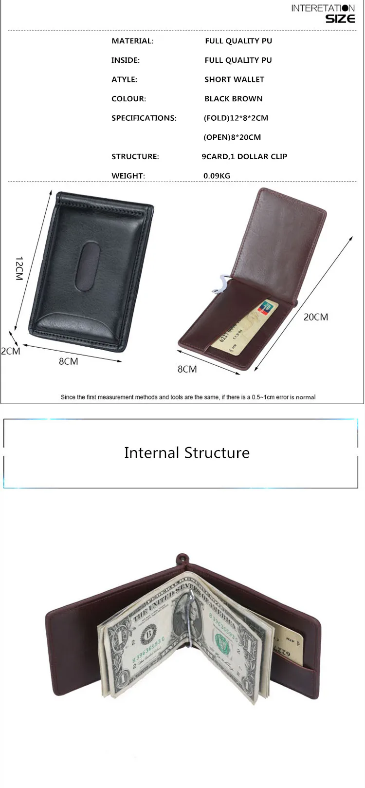 Capacity:Can Hold 9 Cards,1 Stainless Steel Cash Clamp