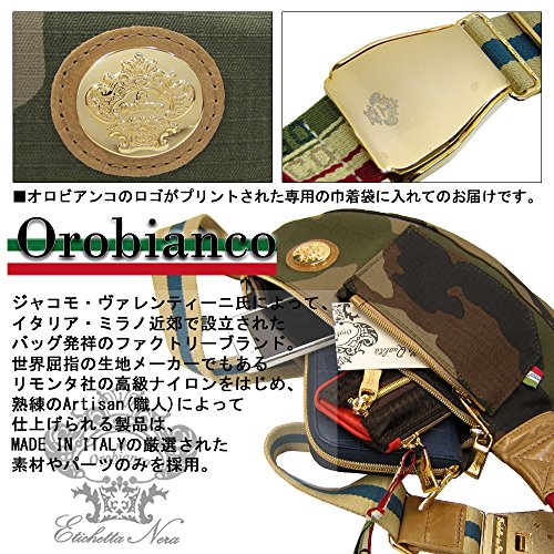 -. Feature : ■カラー:迷彩柄 金具:ゴールド / ■サイズ:(約)高さ約17cm×幅約31cm×マチ約10cm ショルダー紐(最大)121cm(全てスタッフの手作業による採寸です。多少の誤差はご了承下さい) / ■素 材:リモンタ社製コットンナイロン、レザー / ■仕 様:ファスナー開閉式メインポケット×1 外側:ファスナー開閉式サイドポケット×1 / ■付属品:オロビアンコ専用巾着袋