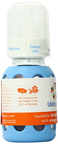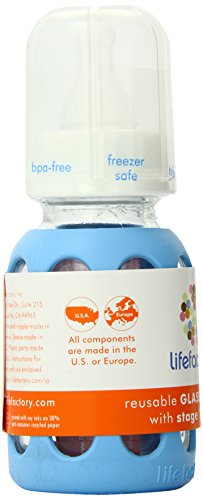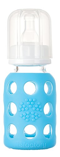 Lifefactory 4-Ounce BPA-Free Glass Baby Bottle with Protective Silicone Sleeve and Stage 1 Nipple, Sky Blue