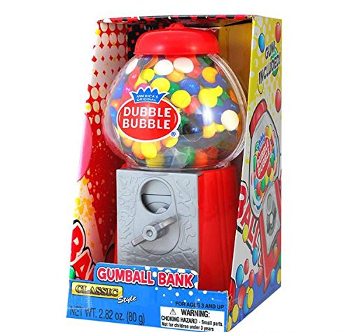 Dubble bubble 8.5" classic style coin operated gumball bank include 45 gumballs