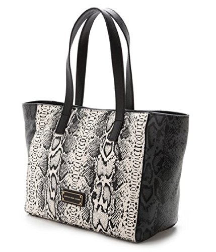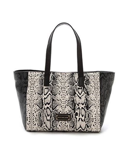 Product Description A soft leather Marc by Marc Jacobs tote has contrast snake-printed panels and a front logo plate. A snap button opens the lined, 3-pocket interior. Top handles. Dust bag included. 0