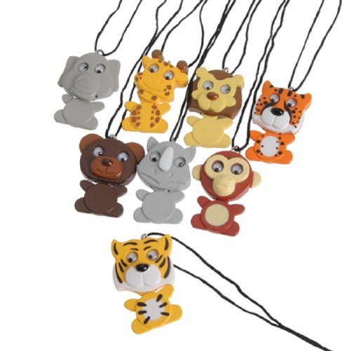 -. Brand : U.S. Toy -. Color : Assorted -. Department : boys -. EAN : 0049392283479 -. Feature : Lot Of 12 / Assorted Wild Animal Designs / Size: 26" / Pendant Size: 2.5" / Body Wiggles When Shaken -. Label : US Toy -. Manufacturer : US Toy -. PackageQuantity : 12 -. ProductGroup : Apparel -. ProductTypeName : CHILDRENS_COSTUME -. Publisher : US Toy -. Size : 26" -. Studio : US Toy -. Title : Dozen Wiggling Assorted Wild Animal Necklaces -. UPC : 049392283479