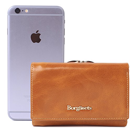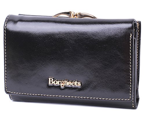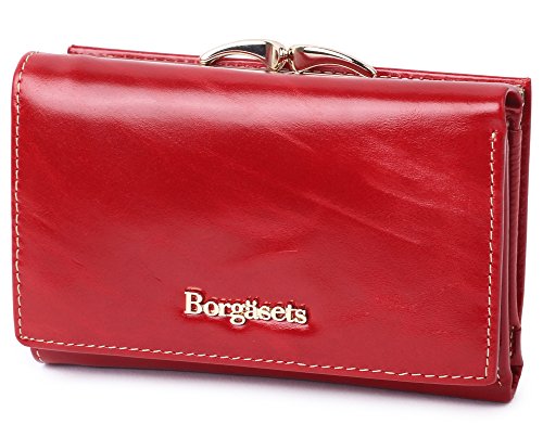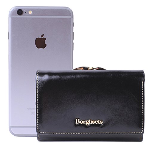 -. Title : Borgasets Trista Women's Trifold Wallet Leather Card Holder Kiss Lock Coin Purse