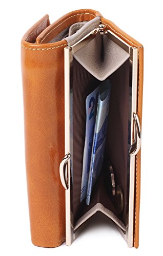 -. Feature : Genuine leather construction with vintage finish / Pale golden metal kiss-lock closure and metal Borgasets brand LOGO / Interior has 10 card slots, 1 ID window, 1 roomy zippered pocket,2 bill site compartment,exterior 1 Kiss Lock Coin Purse / Measures 5.11" x 3.54" x 1.1",Please note that interior linings may vary by season,Size is measured by hand, please allow 1-3 cm error / Accessories Borgasets exquisite gift boxes and flannelette