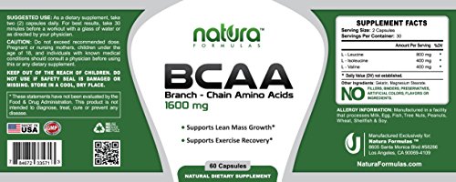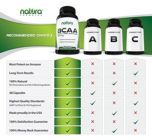 - Feature : ★ 56% OFF ★ MAY SALE ★ LIMITED TIME OFFER ★ ORDER NOW AND SAVE BIG ★ Take Advantage of This Special Deal and Grab This #1 TOP RATED BCAAs - 4.8 OUT OF 5 STAR REVIEWS "This is by far the best Amino acids out there. I have tried many brands. This brand I saw an instant gratification! My muscles were not sore or cramping the way they did when I took another brand" - Donna, one of the many thrilled clients of Natura Formulas BCAAs. / ★ BUILD MUSCLE FASTER - GUARANTEED - BCAAs triggers protein synthesis, you will gain muscle more quickly and efficiently all while reducing muscle fatigue. That means you will see faster results! Natura Formulas has the most potent BCAAs available on amazon. Contains Essential Amino Acids - L-Leucine, L-Isoleucine and L-Valine. / ★ FASTER MUSCLE RECOVERY - Our unique BCAA formula is designed to drastically help eliminate muscle soreness. That means more sets and longer reps, AND you won't feel as sore. / ★ BURN FAT FASTER - Our Branched Chain Amino Acids (BCAAs) helps lower your body fat while protecting your muscles. This gives your body VISIBLE DEFINITION. That means get ripped faster because you will keep your muscle tone while burning more fat. / ★ GET RESULTS OR YOUR MONEY BACK - You are protected by our 100% Money Back Guarantee. If, for whatever reason, you are not satisfied with your purchase from Natura Formulas, just return the empty bottles for a full refund! WE STAND BEHIND OUR PRODUCTS WITH A RISK FREE GUARANTEE. That's the Natura Formulas Guarantee.