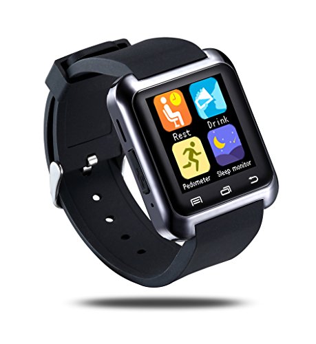 - Feature : This is a new Bluetooth Smart U Watch compatible with all Bluetooth V2.0 or above enabled smartphones, tablets and PCs,such as Iphone/Samsung/LG/HTC etc. / Talk Time3 hours,Standy-by time about 160 hours,Built-in 230mAh rechargeable battery,Two-year warranty / 1.44" Capacitive Touch Screen TFT LCD + Bluetooth V3.0+EDR,Transmitting Range10m / Remind you to stand up, physical activity. Remind that you need to drink more water. Ring reminder when your smart phone receive a message / If it use for android Device ,can down the app and fit all the functions. If IOS Device(iPhone4/5/6) can not download the APP and only support these function: Pressure gauge, Calendar, Calling, Calculator, Clock, Stopwatch.