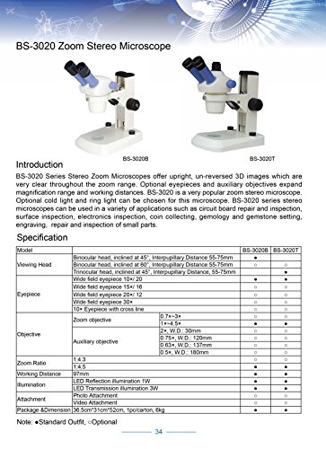 BestScope BS-3020T Trinocular Stereo Zoom Microscope, WF10x Eyepieces, 10x-45x Magnification, 1x-4.5x Zoom Objective, Upper and Lower LED Illumination, Fixed Stage, 110V