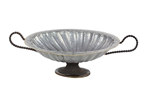 Deco 79 49234 Galvanized Oval Bowl with Stand and Looped Handles, Gray/Gold
