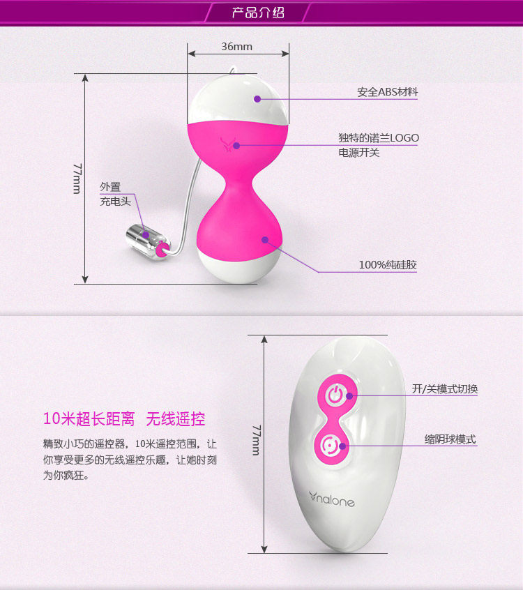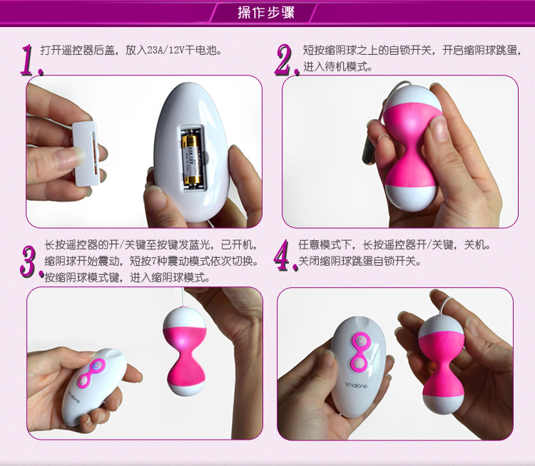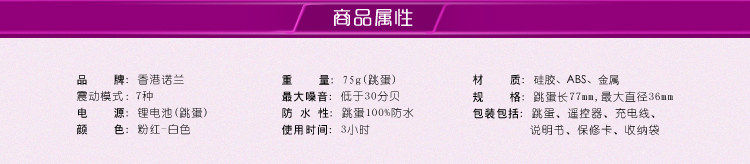 | Product Name: Nolan Niuniu vibration reduction Yameggs Category: Fun Tiaodan Brand: Hongkong Nolan Material: silica gel, ABS, metal Origin: Chinese Dimensions: length 77mm, maximum diameter of 36mm Battery specifications: 1 23A/12V batteries Waterproof: whether our waterproof, waterproof remote controller |