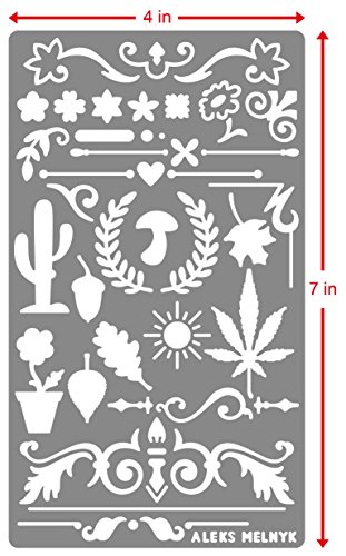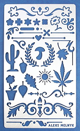 Aleks Melnyk 1 Bullet Journal Stencil - Nature, Dividers & Icons | Metal, Stainless Steel Planner Stencils Journal | Fits Journal, Notebook, Diary & Scrapbook | DIY Drawing Template Stencil