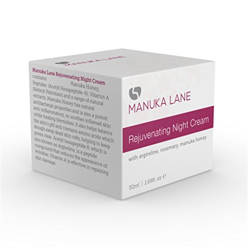 Manuka Lane Rejuvenating Night Cream contains Manuka Honey, Peptides (Acetyl Hexapeptide-8), Vitamin A (Retinyl Palmitate) and a range of natural extracts. Manuka Honey has natural antibacterial properties and is also a potent anti-inflammatory, so soothes inflamed skin while helping to heal blemishes like dark spots.